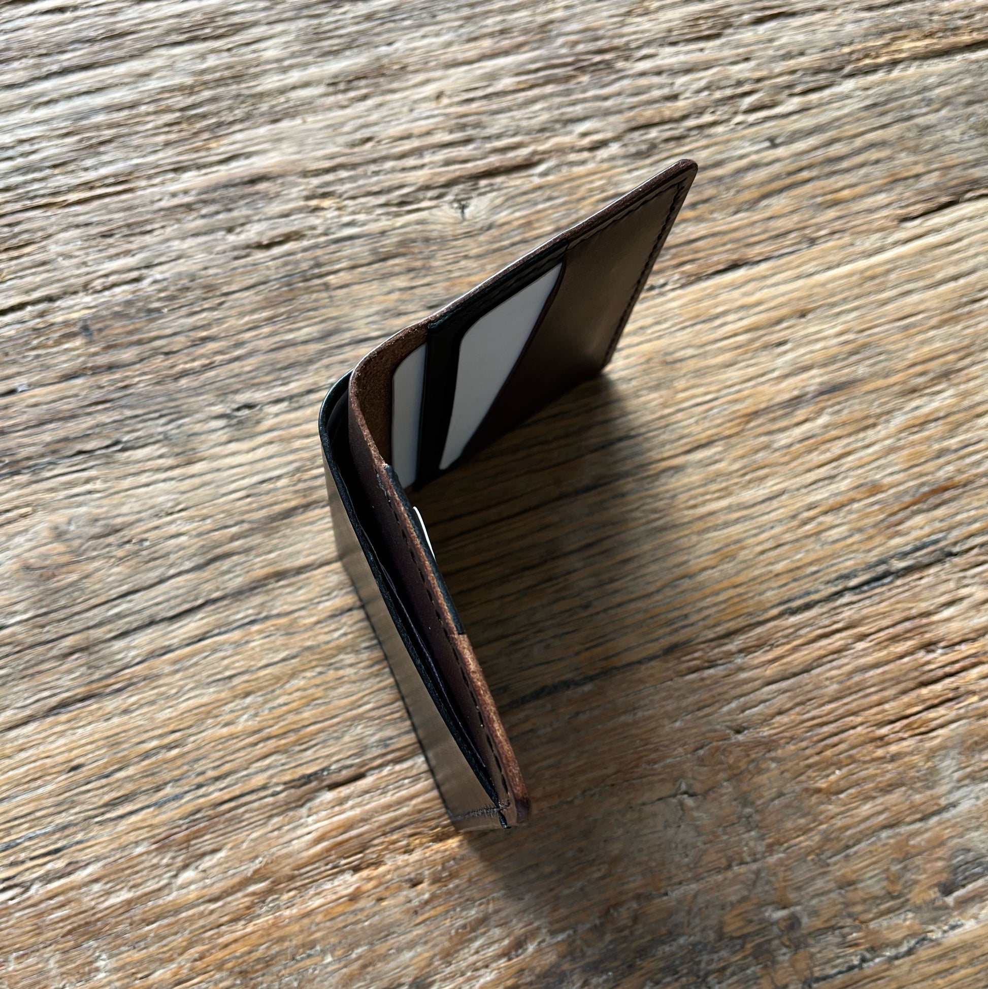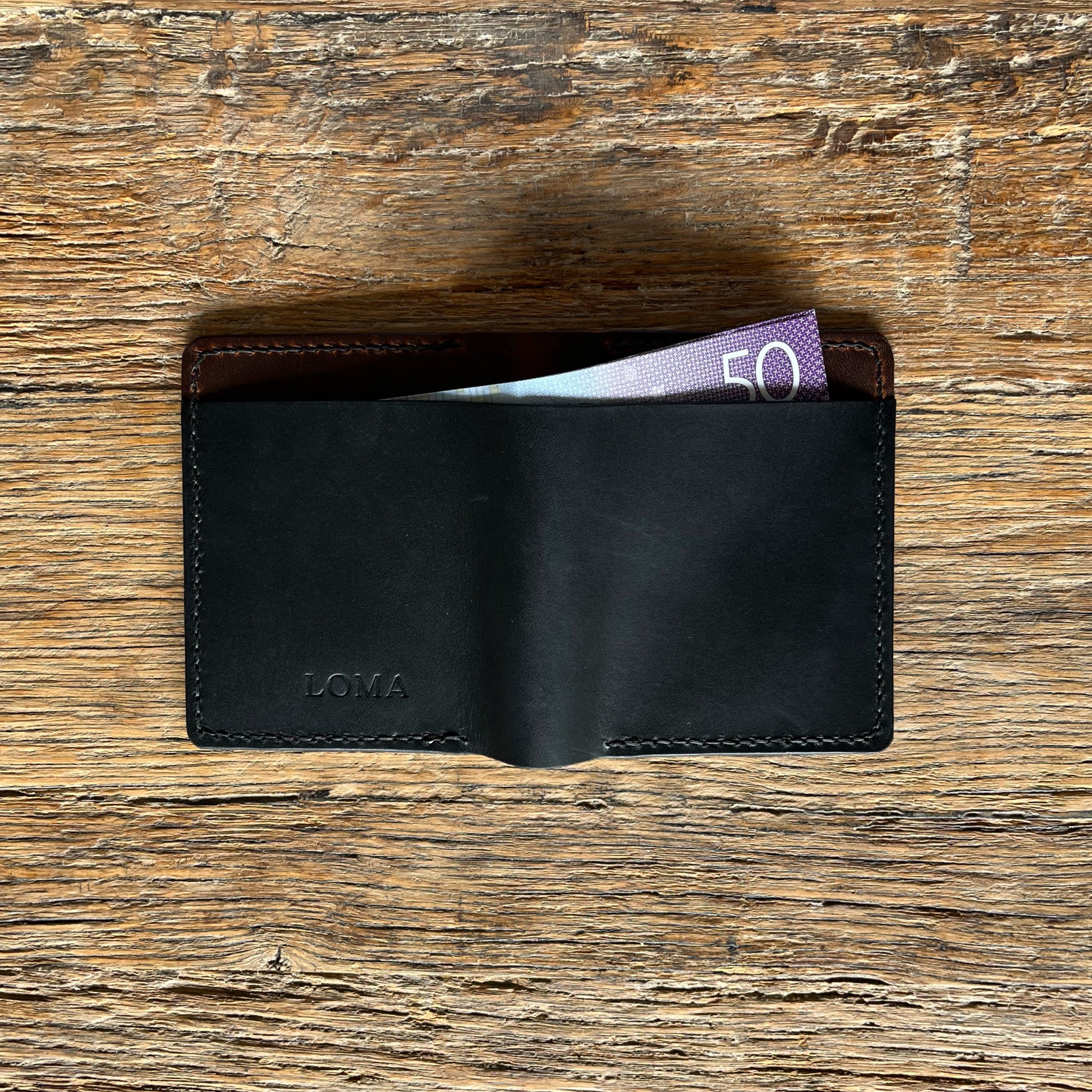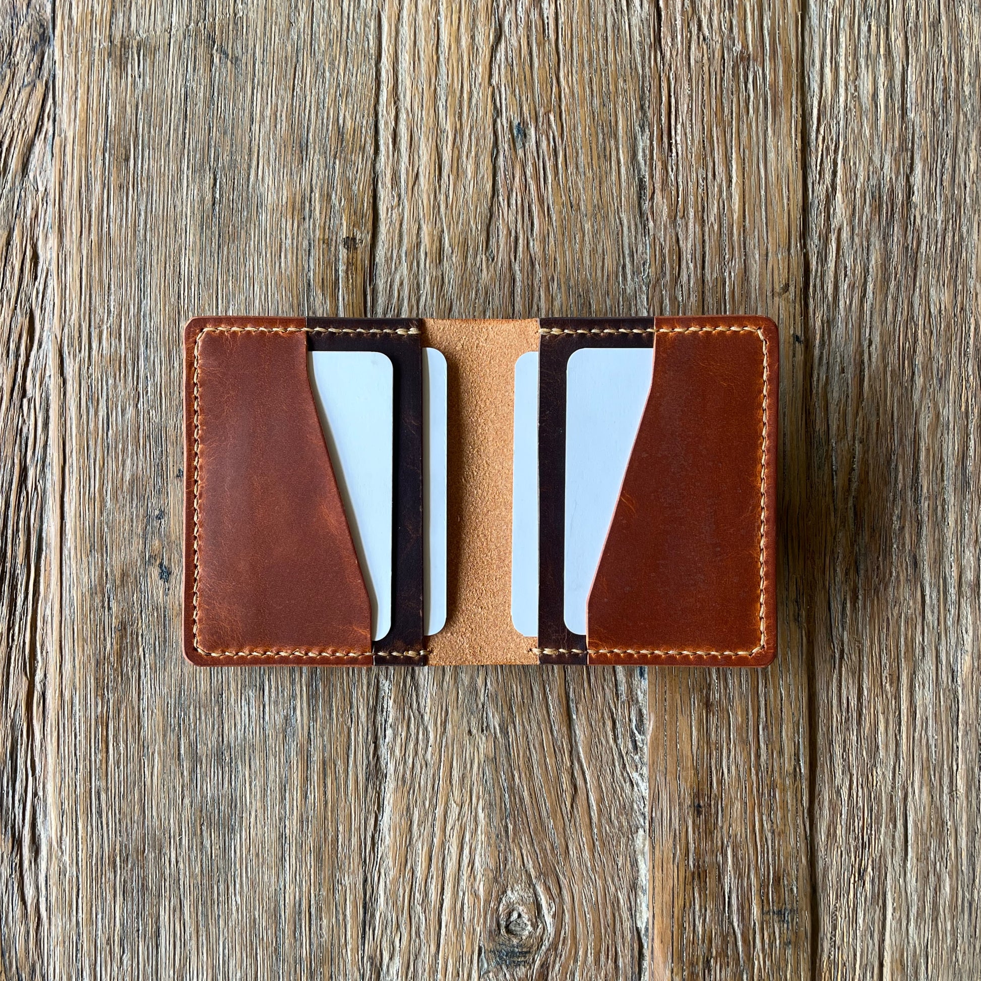 This is our take on the classic bifold cash wallet. Compact yet roomy, it comfortably fits in any pocket.